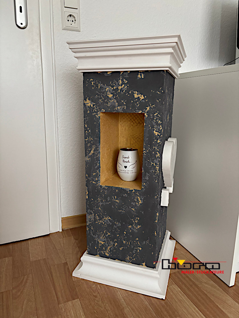 Gipskartonsäulen eignen sich hervorragend zur Verkleidung von bestehenden Stahl-, Stahlbeton- und Holzkonstruktionen. Unabhängig vom Querschnitt können sie auch als sogenannte Scheinsäulen dem Raum eine besondere Note verleihen. Selbstverständlich liefern wir auch Viertel- und Halbsäulen, die aus harten Kanten und Ecken weiche Linienführungen zaubern.